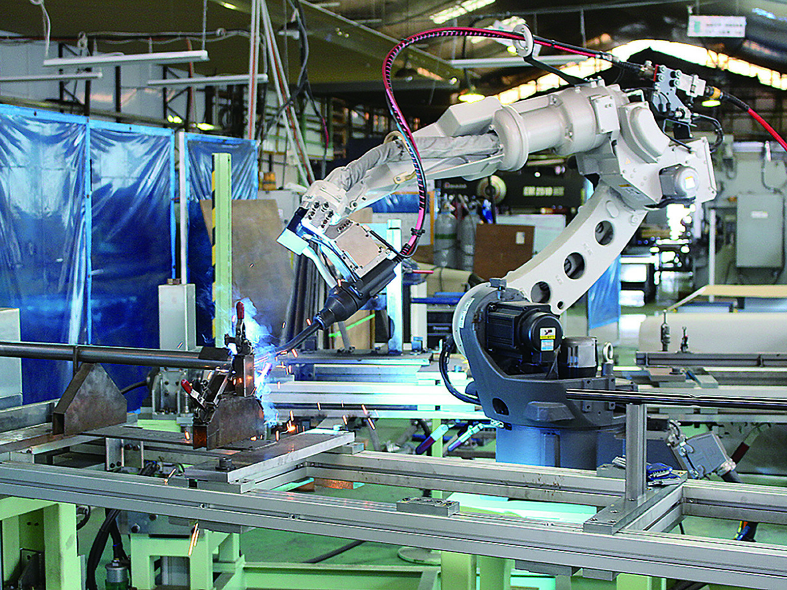 02.裁断(レーザー・タッピングなど)・曲げ・溶接(CO2・スポット・ロボットなど)と多様な加工に対応。木工との組み合わせで意匠性と強度を兼ね備えた製品を実現。